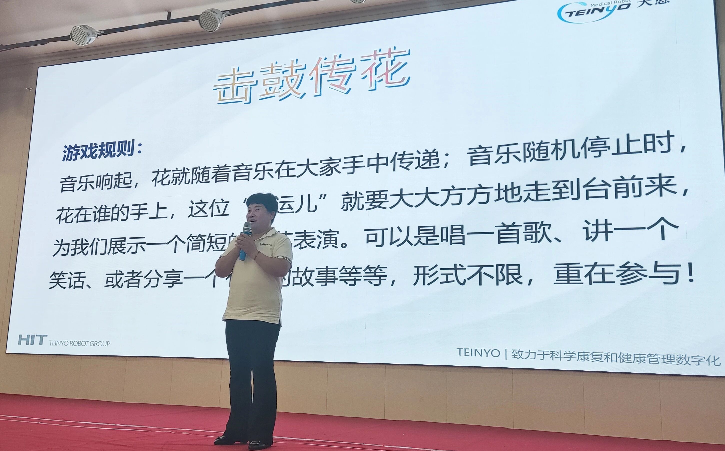 午后,“擊鼓傳花”互動環(huán)節(jié)迅速點燃現(xiàn)場氣氛,被選中的河北省保定市清苑區(qū)運營中心負(fù)責(zé)人史志會女士真誠地分享了自己和哈工天愈機(jī)器人集團(tuán)的故事,展現(xiàn)出合伙人昂揚向上的精神風(fēng)貌。